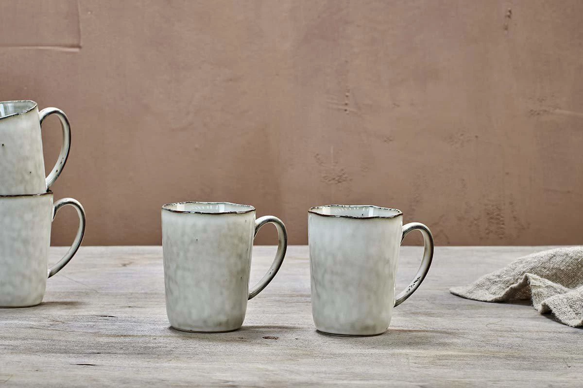 The natural composition a neutral tone and an eye -catching glaze gives our Amina mug an attractive finish. The rim of the mug and edging of the handle have a darker earth toned finish that adds definition.