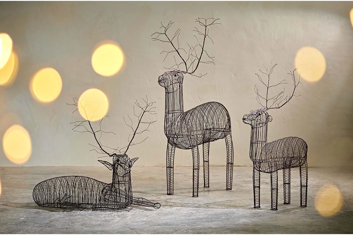 These pieces are made from metal wire, further weathering will occur if left outside to the elements, but we think this only adds to the look. The antlers are attached the body of the reindeer, they can be adjusted and shaped.