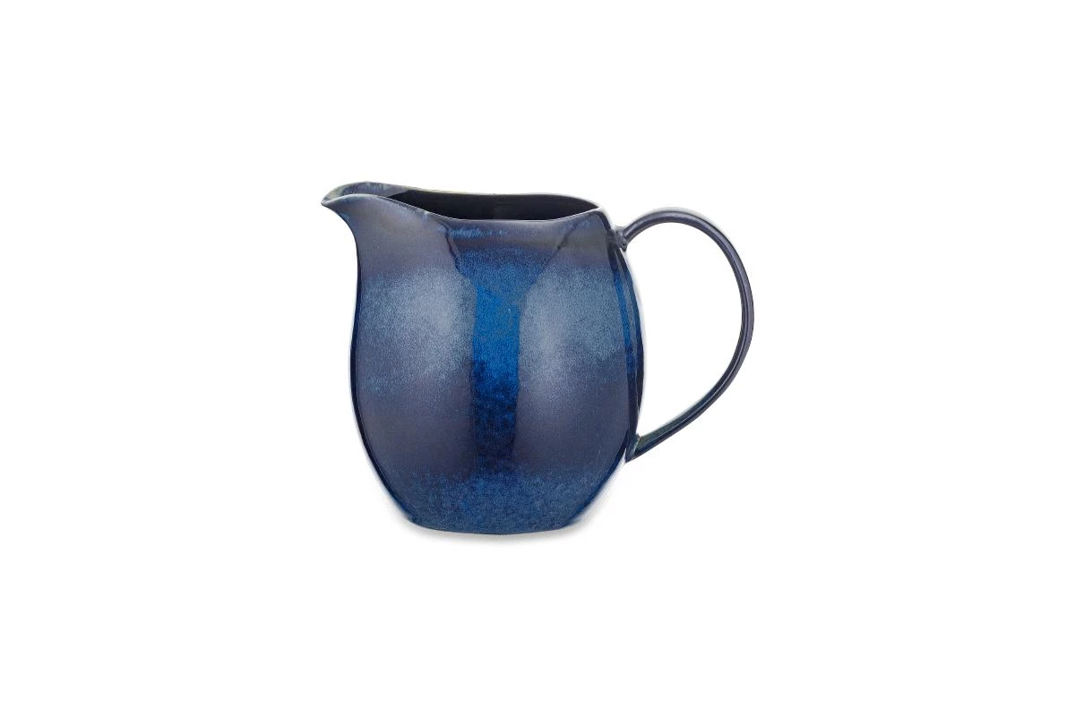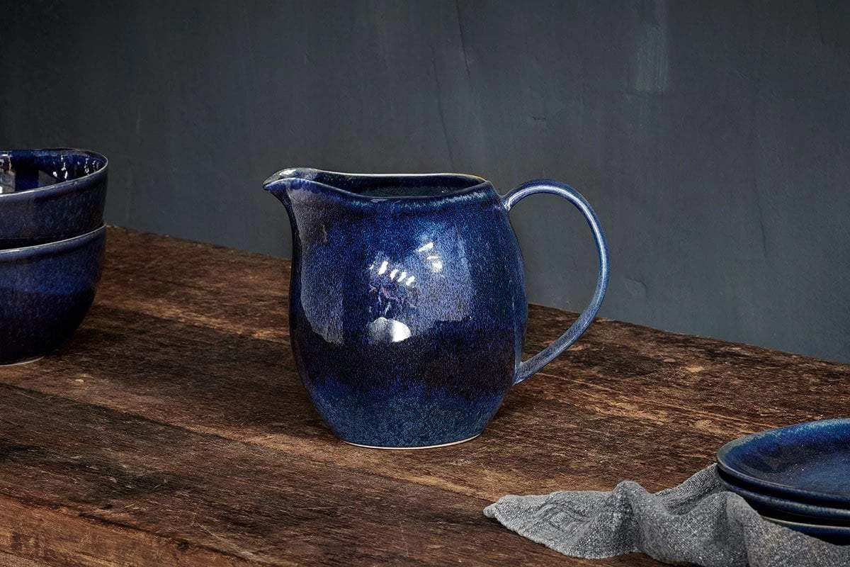 Organic shapes and a unique reactive glaze combines in this attractive and practical ceramic jug. The deep indigo – sky tone makes this a striking piece.