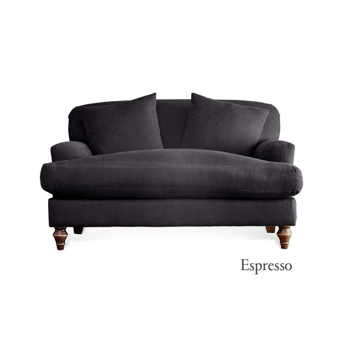 Our Deni Love Seat combines sumptuous comfort with enduring design in a stylish UK crafted solid wood framework with pure Brera Linen upholstery and solid wood legs. We have curated a palette of six sophisticated shades. This beautifully crafted piece works well as a cosy two seater and luxurious armchair, with plenty of space to curl up with a good book. Our Deni Love Seat comes with two matching handmade cushions.
