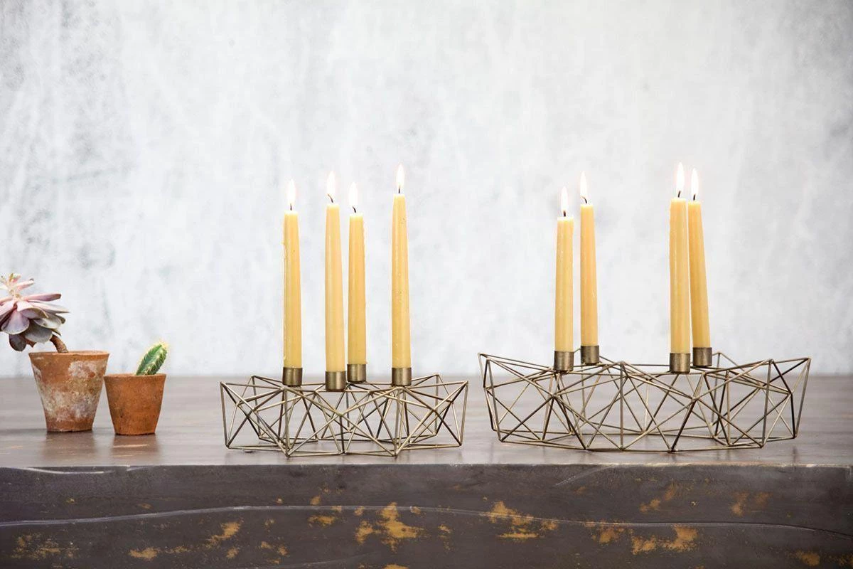 These geometric brass candle holders are a statement piece. They hold four standard candles and make an eye catching table centre.
