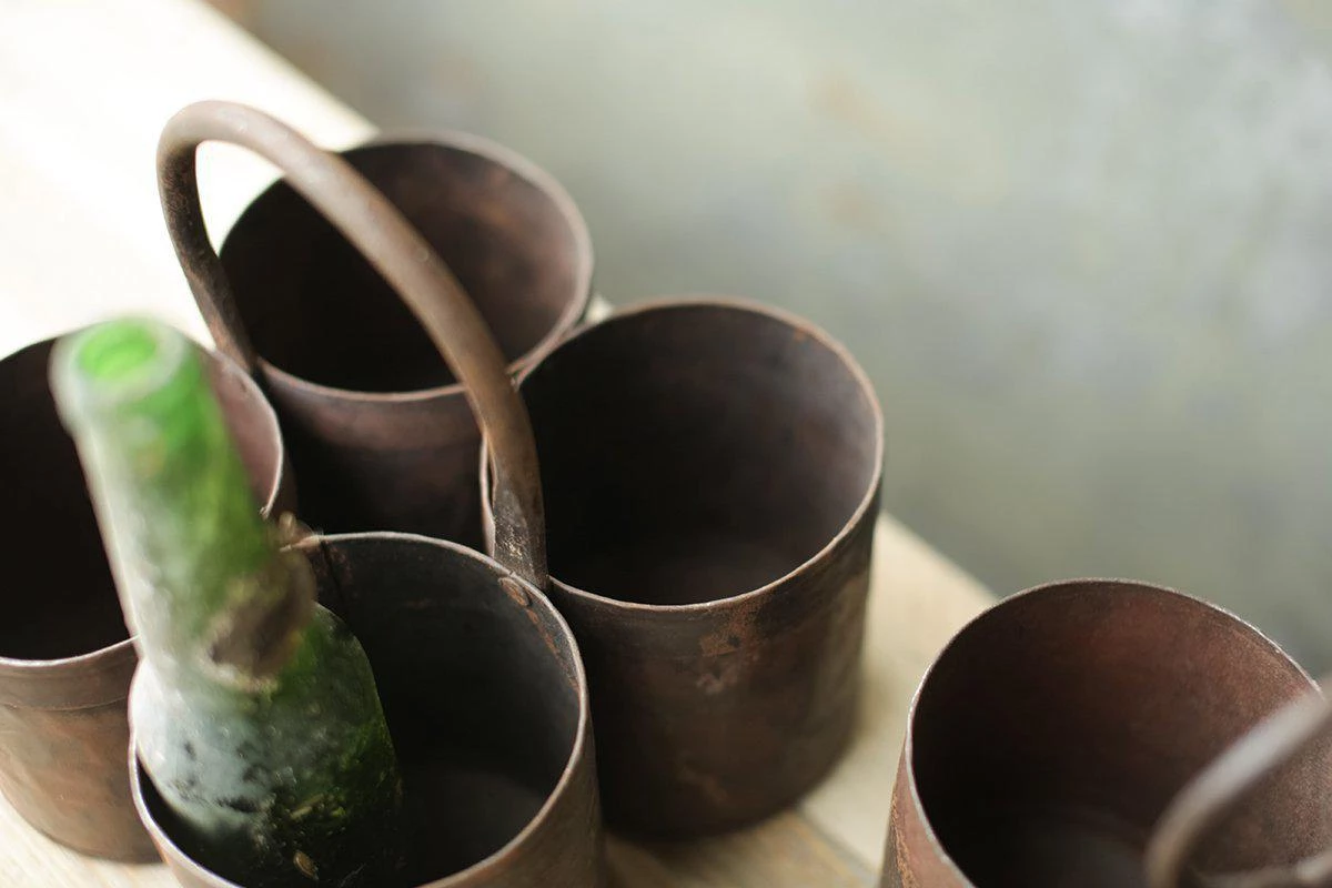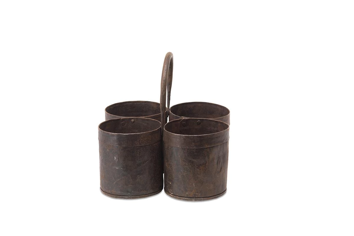 These exquisite storage pots are made from reclaimed metal sheets giving them a beautiful aged look. Choose from two storage compartments or four storage compartments. These round metal storage pots are perfect for organising cutlery and utensils, or paint brushes and pens.