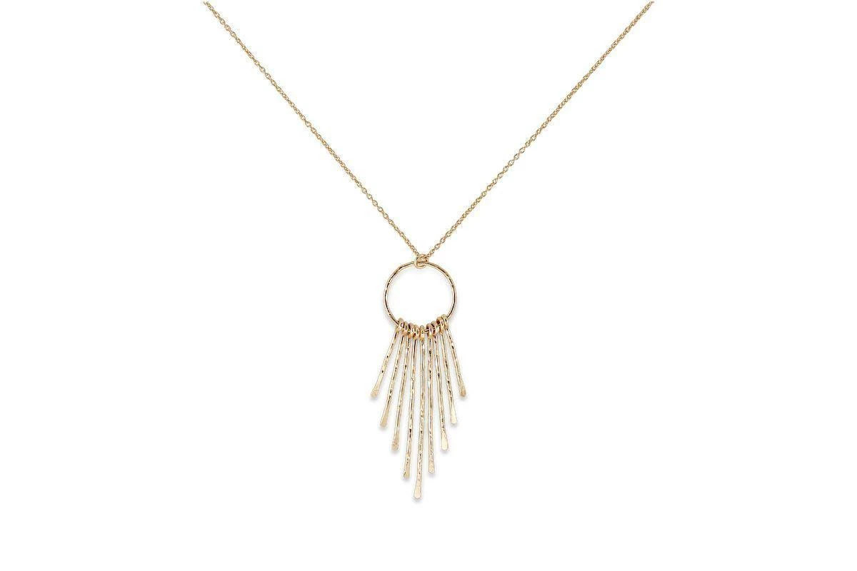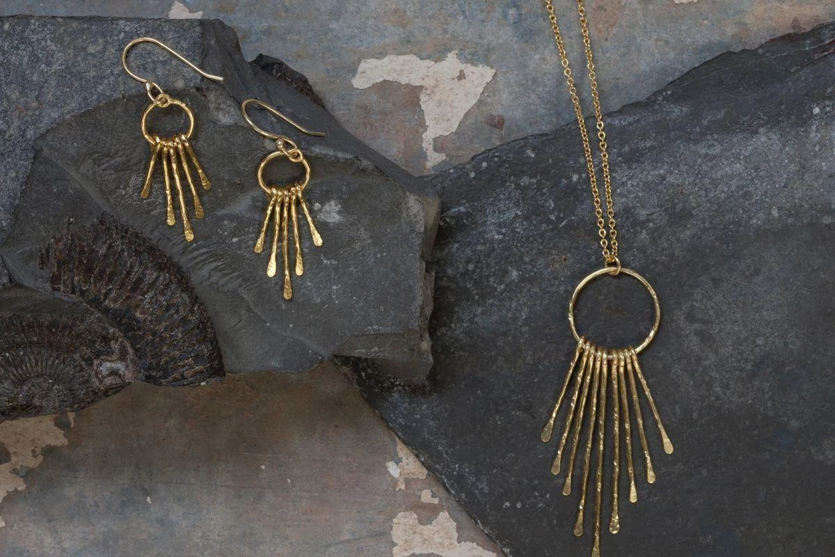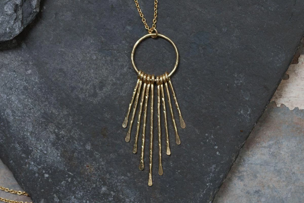 This elegant gold-plated pendant is made from a 22 karat circular loop decorated with 5 points in a striking tribal design.