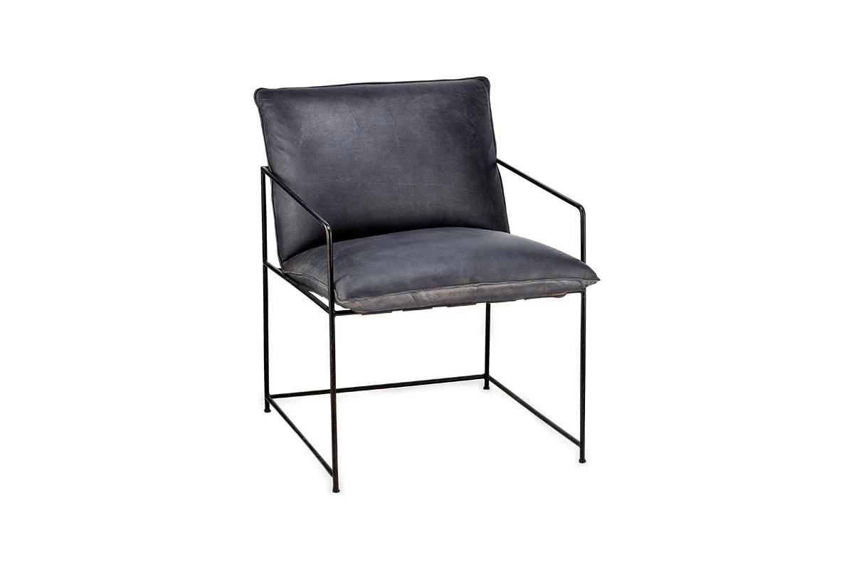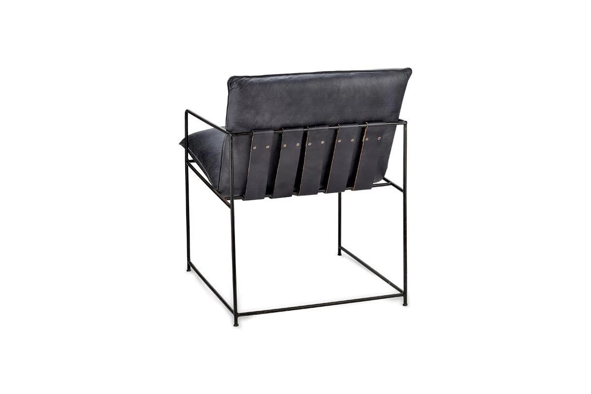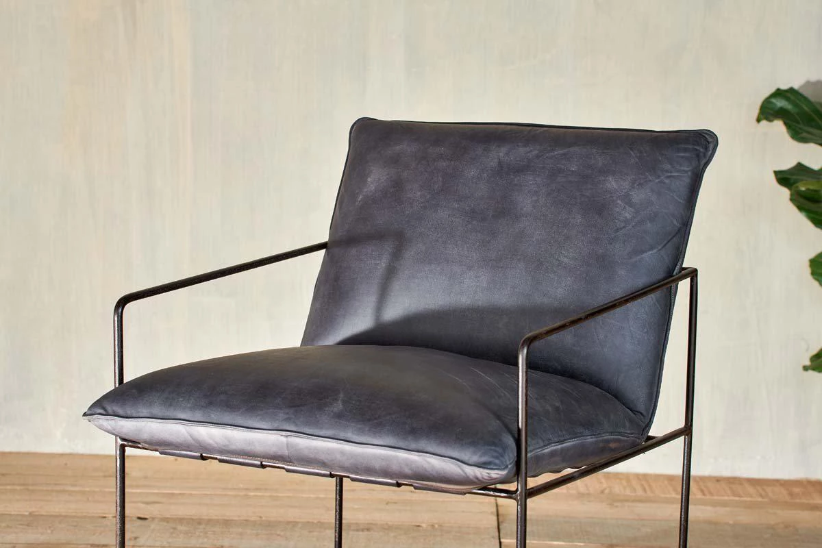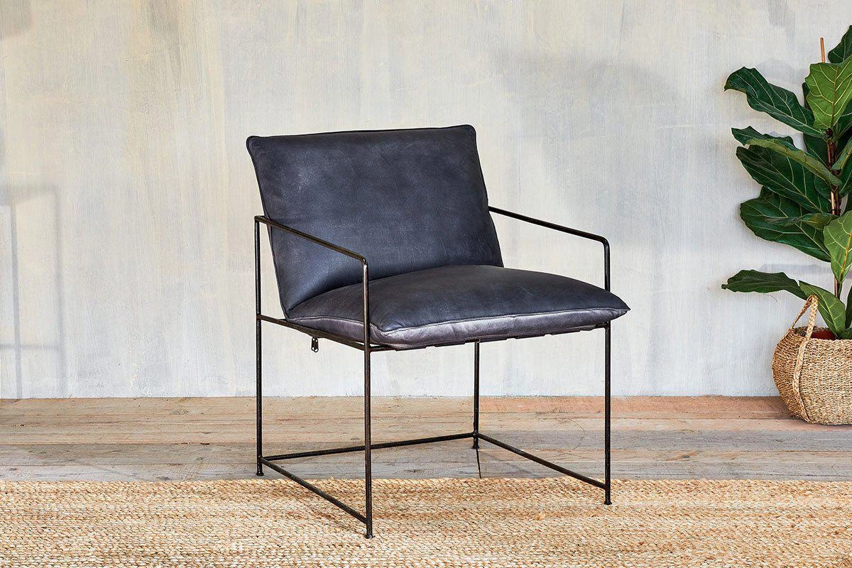 Stylish and comfortable, our Durium lounger combines distressed black leather in a sumptuous padded seat with a striking solid black rolled iron framework.