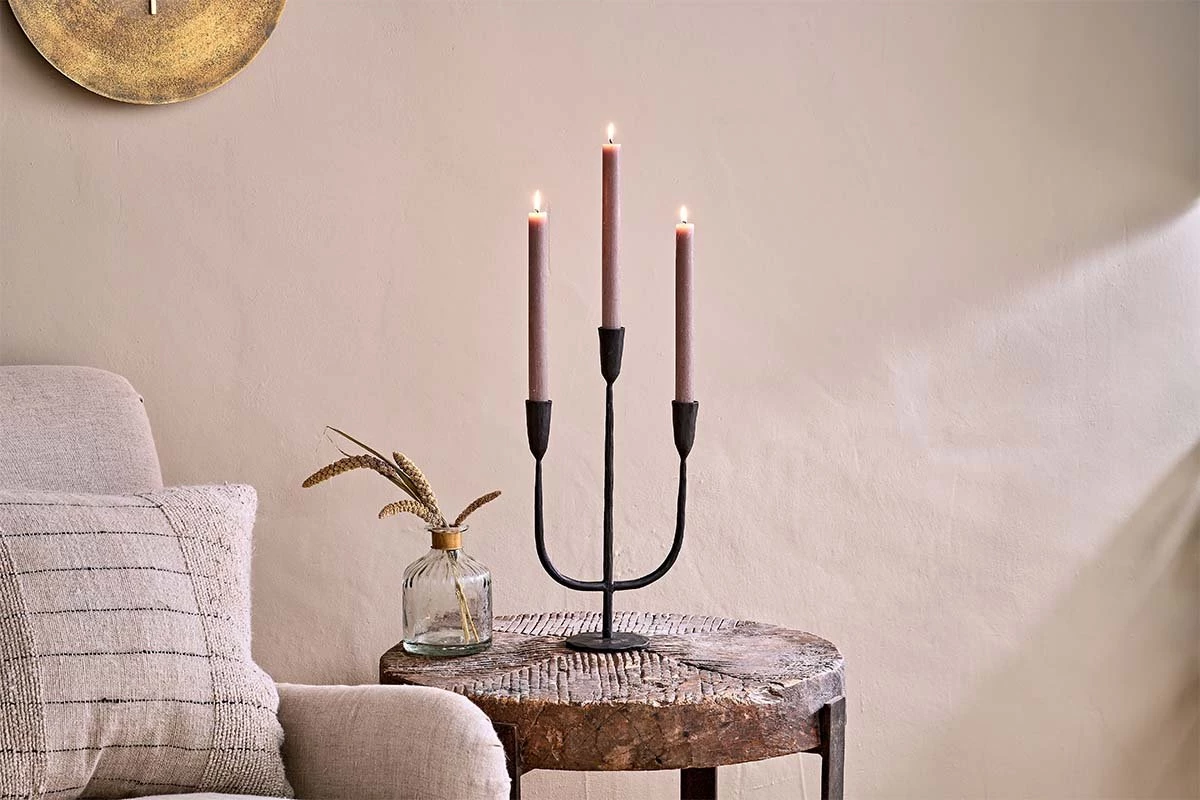 These elegant candlelabras are handmade from black iron.