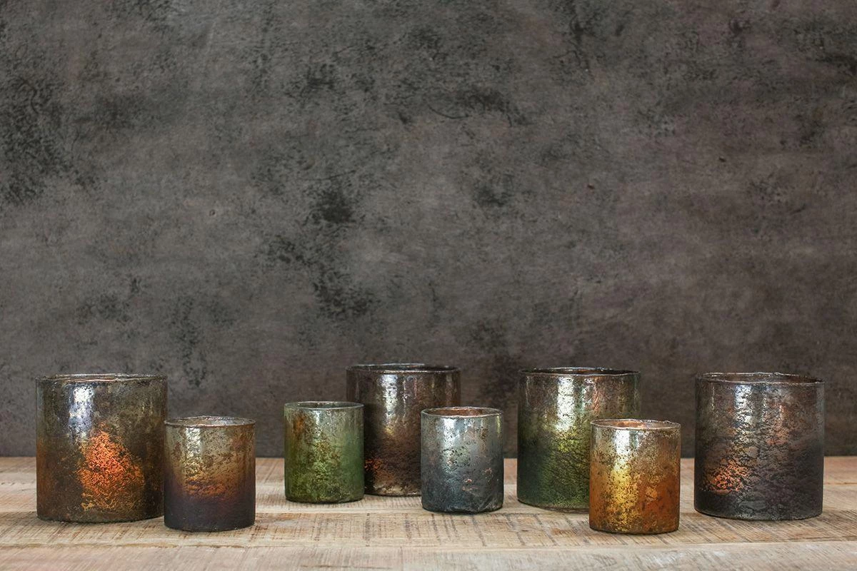 The rustic tones of these t-lights blend dark greens, blues, golds and terracotta. When the candle is lit the warmth of the rustic hues shines through.