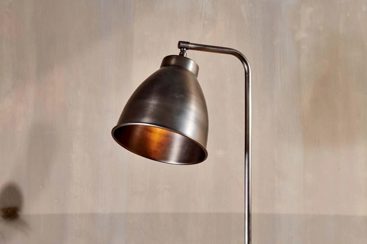 The warm aged bronze patina of our Muturi Floor Lamp blends simple clean design with solid brass. This striking floor lamp has a solid brass shade making it a stylish down light, ideal for positioning beside an armchair or sofa end.