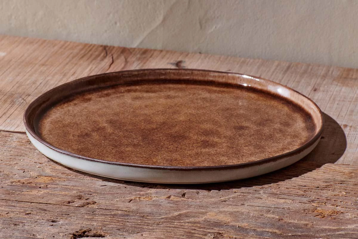 Our tactile, Simi Dinner Plate has a warm earth patina, with a beautiful, tonal glaze. The contrasting exterior has a subtle off-white finish, that enhances the depth of colour.