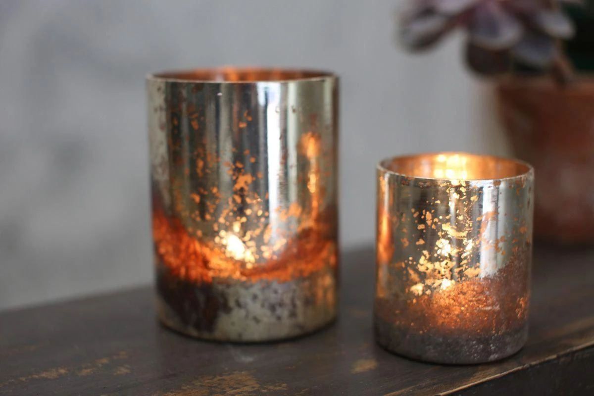 These rustic silver t lights have an elegant cylinder shape that sits beautifully on a window sill, mantel piece or coffee table.