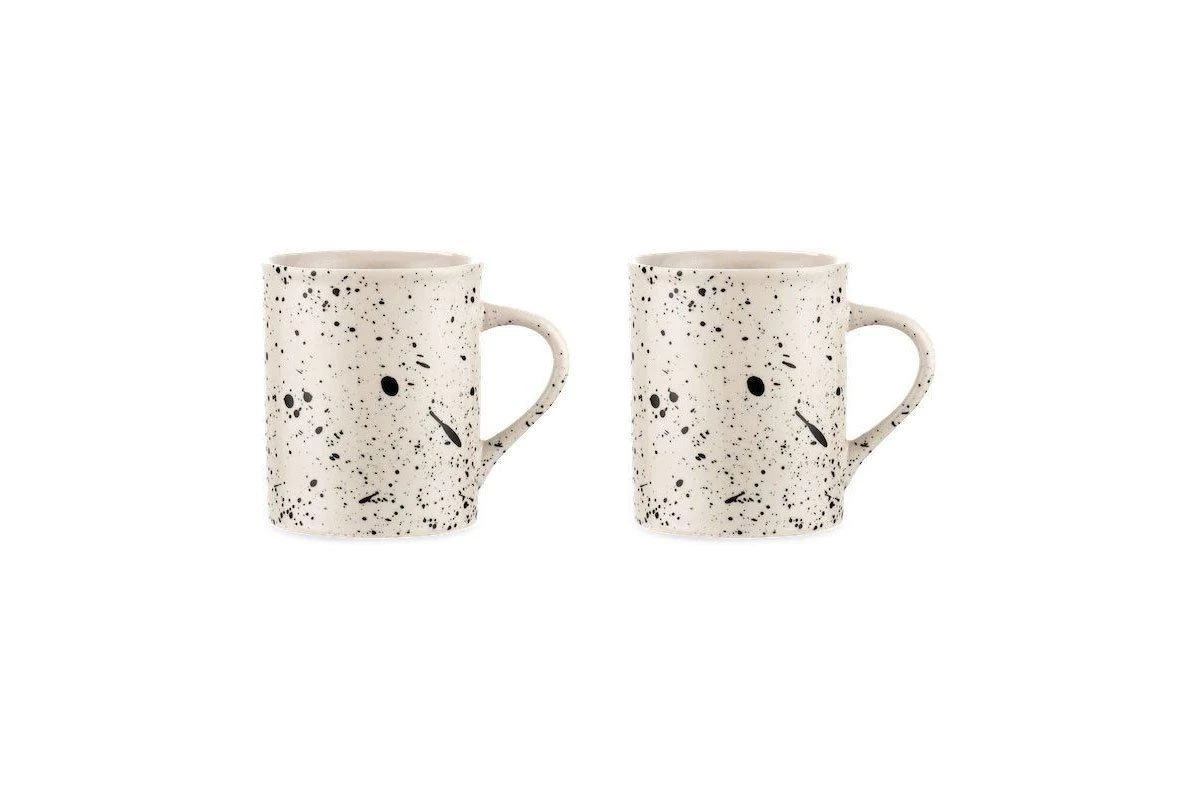 These artisans made Ama mugs are decorated with a black splatter finish. This eye-catching design is created by hand. These stylish mugs have a smooth glaze finish and tactile quality.