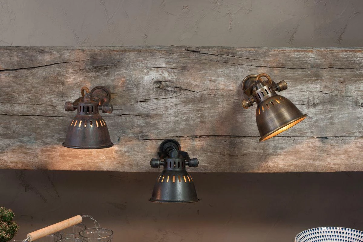 Complete the look with these industrial looking spotlights. These metal spotlights come in a lovely rust finish and each one has an adjustable join so you can angle the lamp.