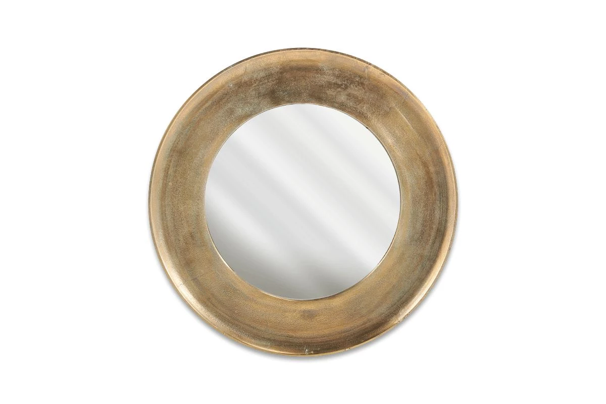 Stylish and beautifully crafted our Yakira mirror makes a striking focal point. The circular design has a deep textured border that celebrates the artisan process. The antique brass finish gives it an attractive antique look.
